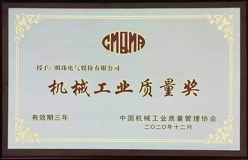 明珠電氣再次榮獲“機(jī)械工業(yè)質(zhì)量獎(jiǎng)”