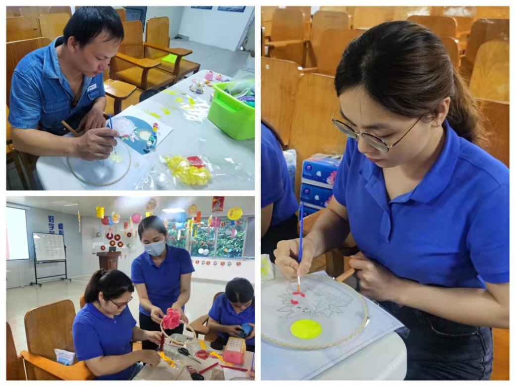 活動現場,除了妙趣橫生的燈謎外,還設了DIY彩燈,描繪扇面,黏土制作等手工活動。從散落的零件到精致可愛的彩燈,從空白的扇面到活潑靈動的團扇,從五顏六色的黏土到俏皮生動的作品,不同的形式,卻處處都洋溢著節日的歡樂與我們對美好生活的祈愿。